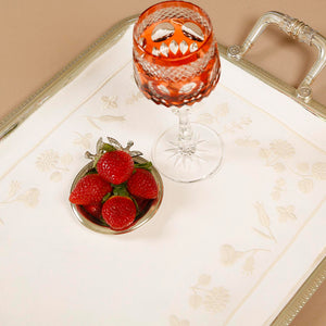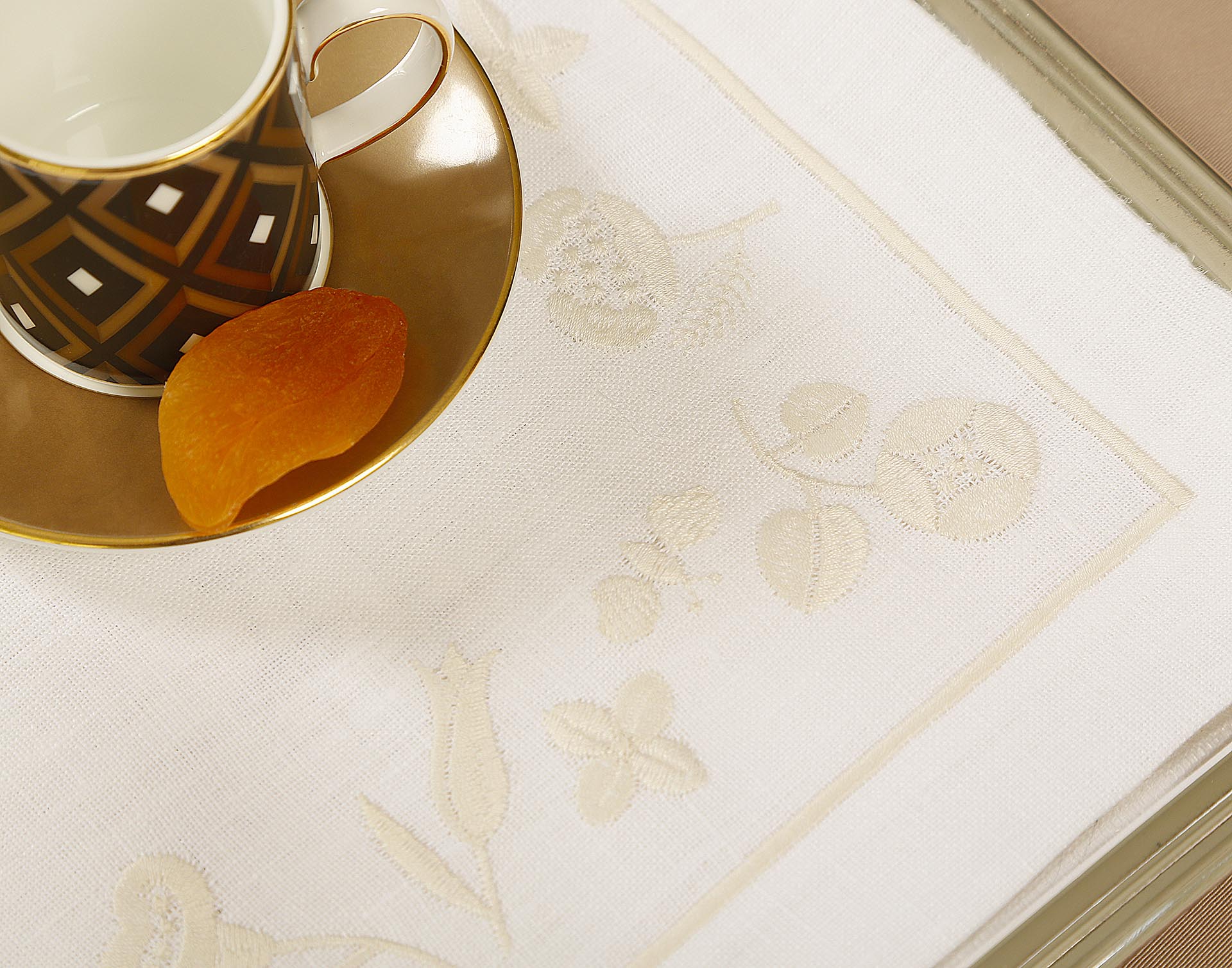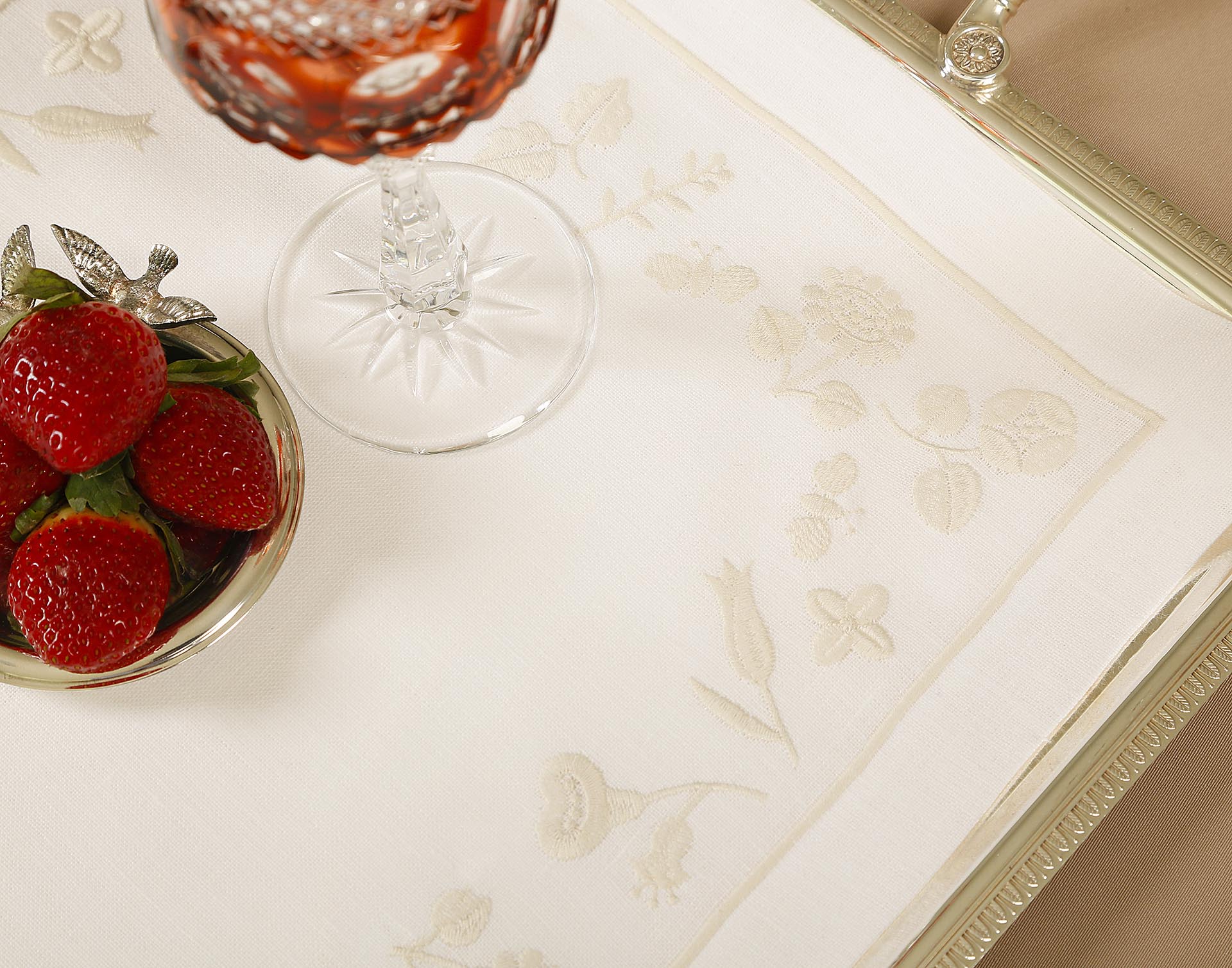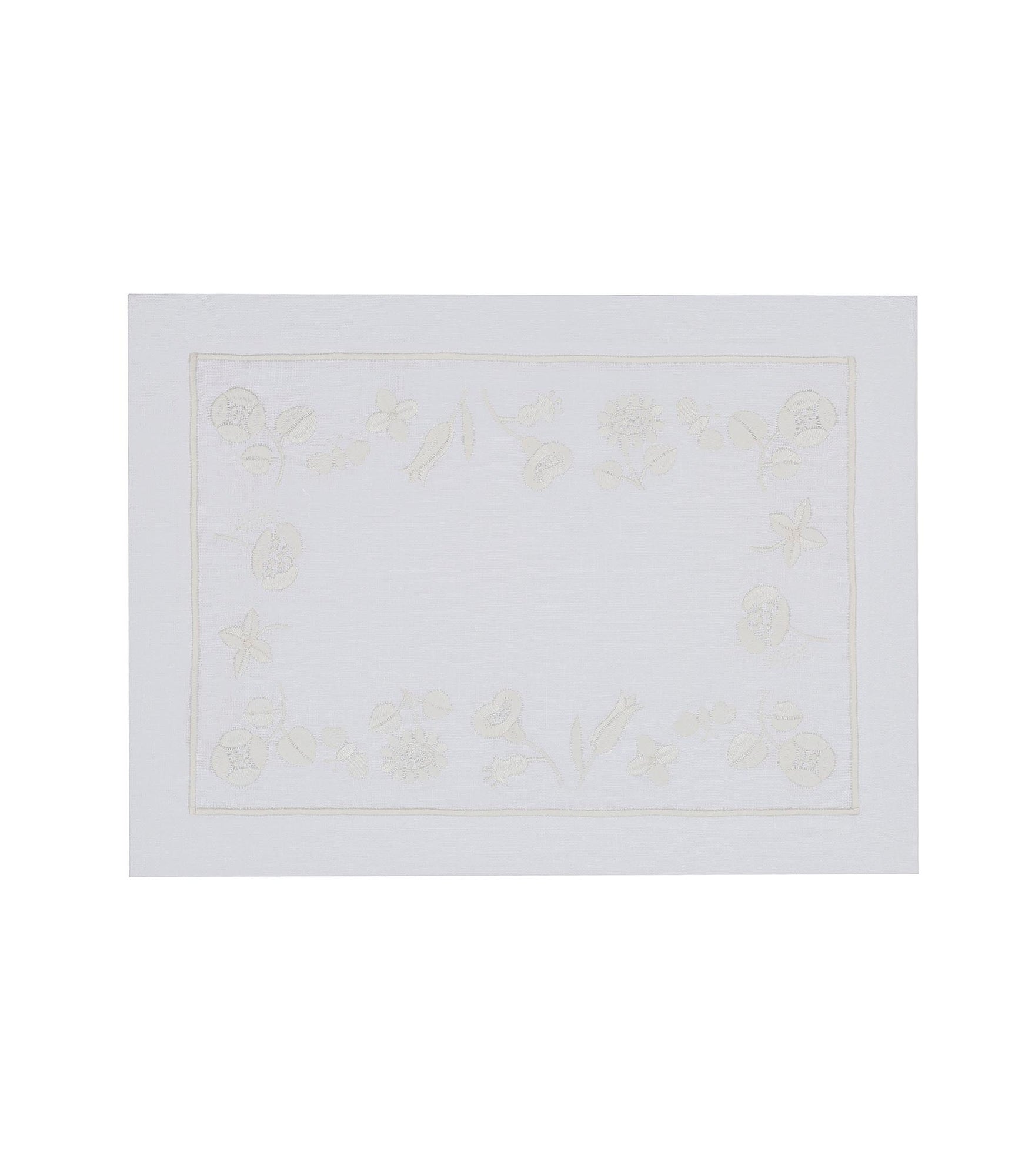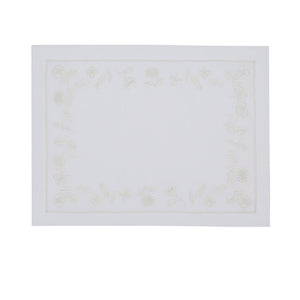 Inspired by quiet floral forms, this design reflects nature’s softness through graceful embroidered blooms. Crafted from 100% Italian linen and finished with fine hand embroidery, the set feels light, calm, and inviting. Subtle hemstitch detailing completes the refined look.