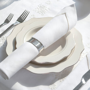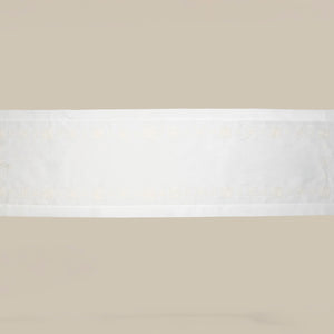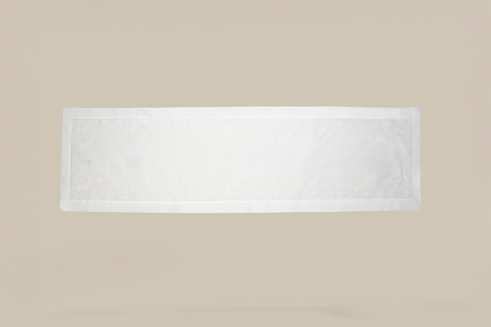 Mosaic Runner is crafted from 100% natural linen, designed to bring quiet elegance and balance to elongated table settings. Its soft white base and delicate embroidery create a clean, timeless foundation for everyday dining and refined hosting.