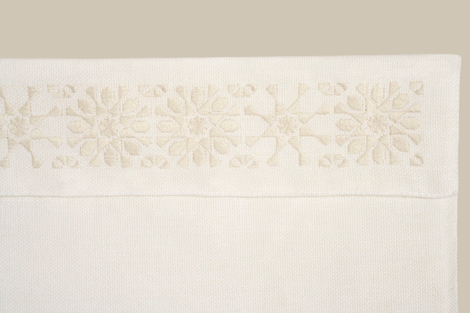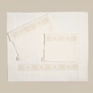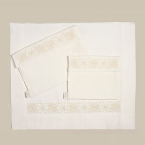 Inspired by moments of reflection and spiritual stillness, this design blends softness with subtle embroidery. Crafted from Italian linen and finished with refined stitching, the set offers calm and elegance for meaningful use.